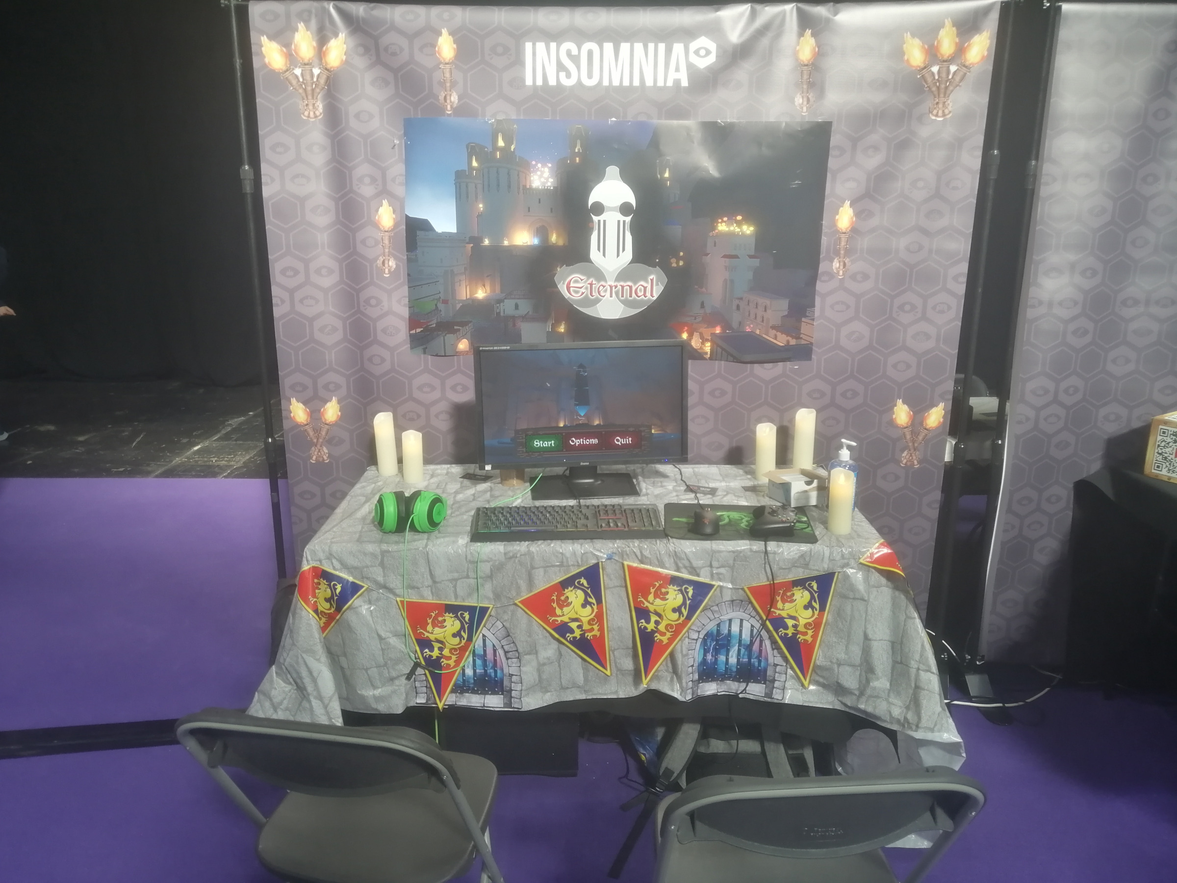 Eternal was showcased at the 68th Insomnia Gaming Festival's indie zone by myself and my colleagues. During my time there I mainly provided support for players and resolved numerous bugs during their gameplay sessions.
