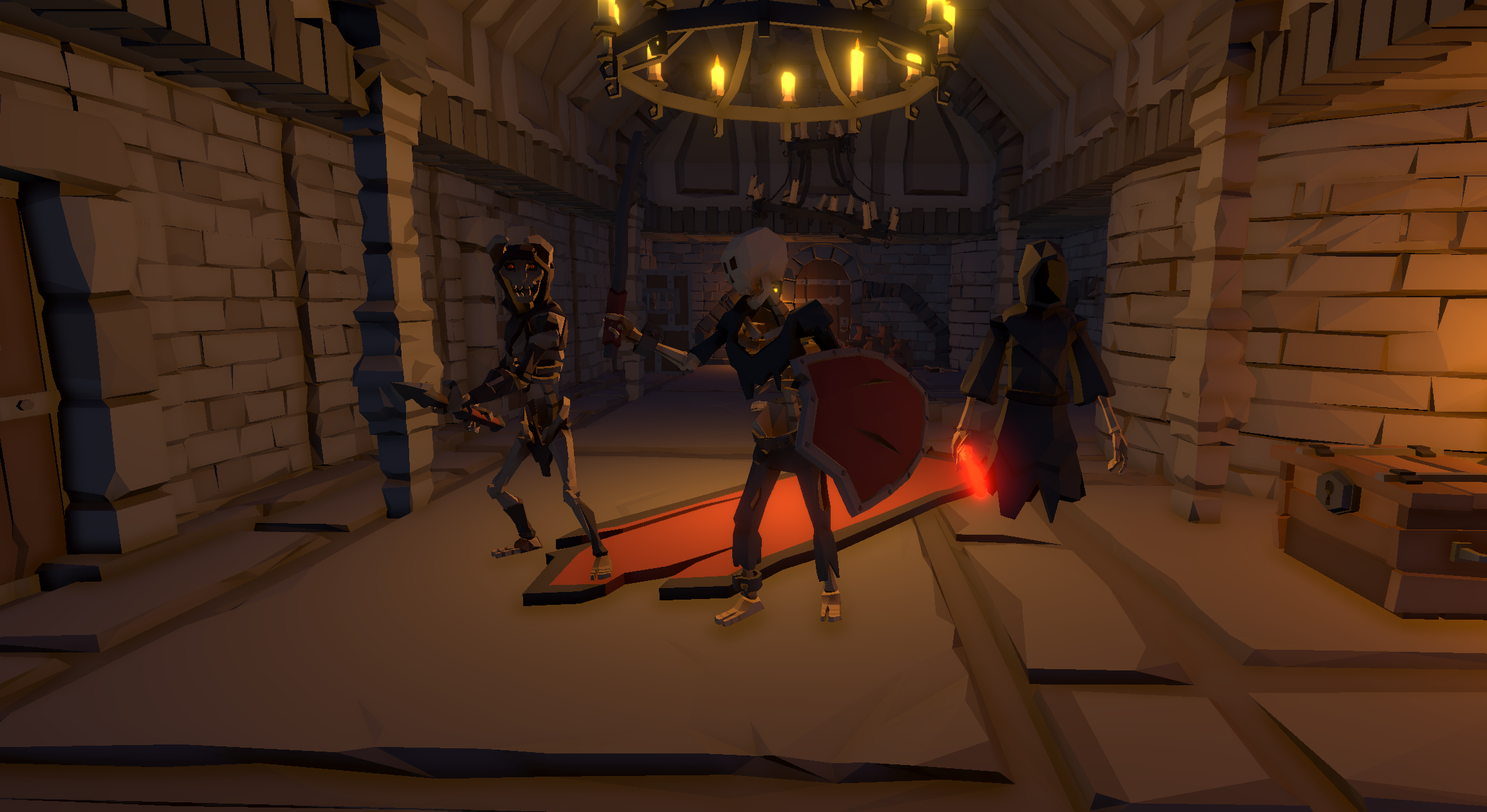 Short-range melee enemies are the most common and show the most basic overall behaviour. Long-range melee enemies aim to keep a set distance from the player so dodge-rolling is a good method to close the gap. Lastly, enemies with shields always have their shields raised and only present an opportunity to attack them when their attacks are parried by the player.